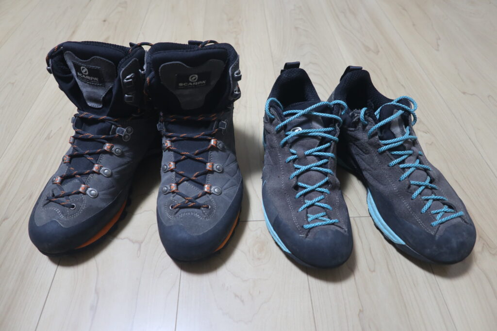 そして現在、メインで使用しているのはスカルパのメスカリートGTXとマルモラーダプロHDの2足に落ち着いています。
