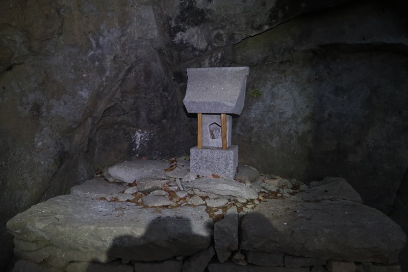 急登を登りきると何なら大きな岩と祠があります。
