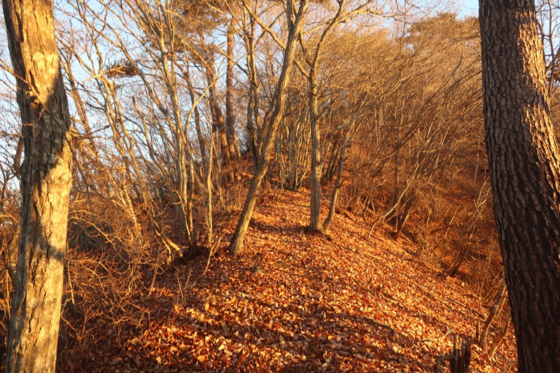 見た目以上に急で落ち葉が積もっているところも多いのでスリップには要注意。