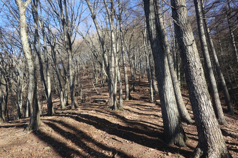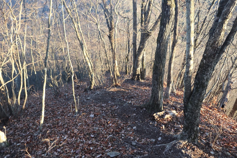 落ち葉がかなり積もっており、落ち葉に隠れて岩などがあるので足元悪し。