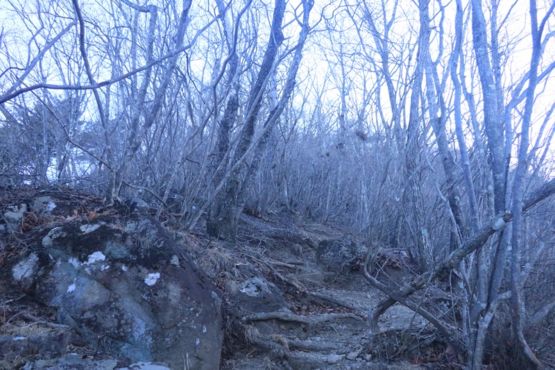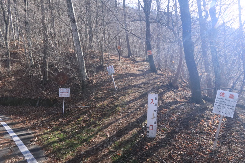 あたりが暗かったので写真を撮っていませんが、駐車場から少し下った橋を渡り、そこから道なりに歩くと登山口につきます。