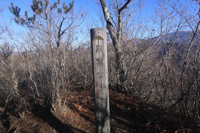 黒富士山頂自体は木々に囲まれて展望はそこまでなく、山頂も狭め。