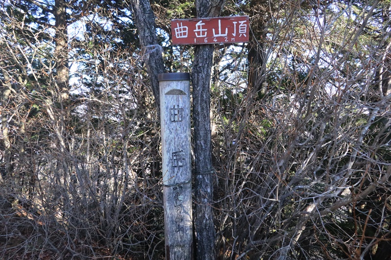 曲岳山頂は特に展望のなく、山頂も狭し。