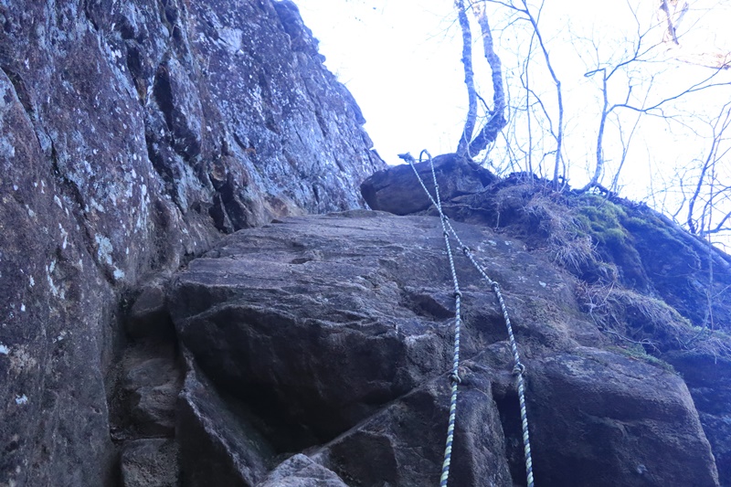 ロープ有のなかなかの急登具合です。