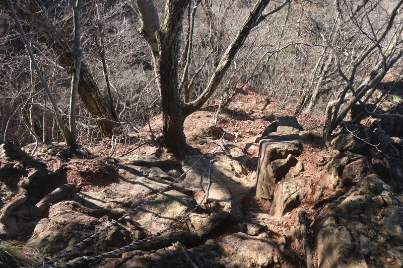 ロープ有の箇所も多く、急な場面も多いので下りには注意を払いましょう。