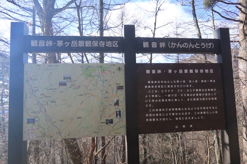 観音峠の看板は登山口の近くあります。