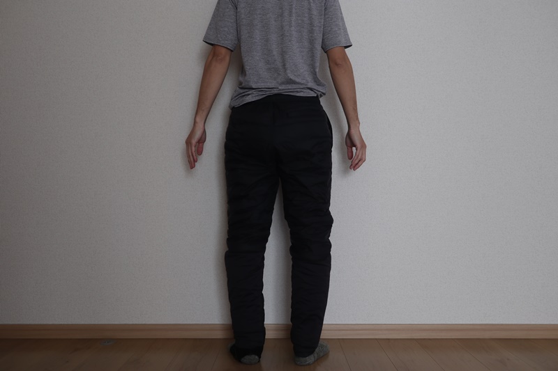 ダウンパンツ自体は薄手であまりモコモコしていません。