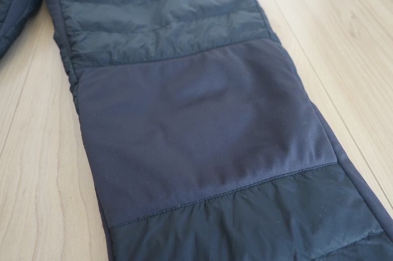 この部分が伸びる素材となっており、そのおかげで身体にフィットでダボつきなし。