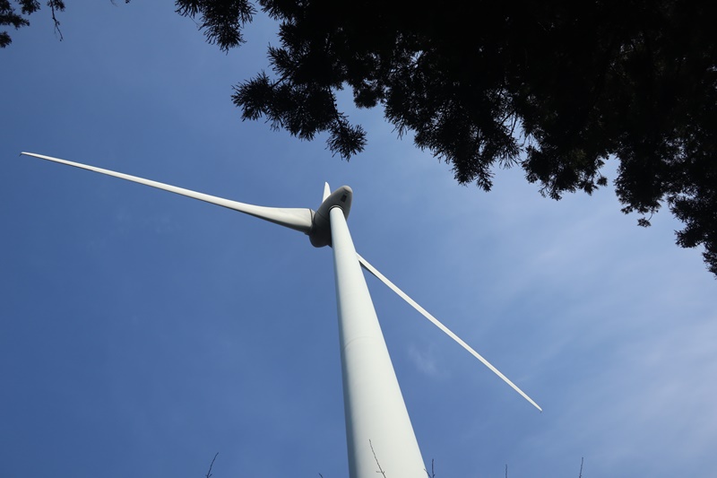 近くには風力発電の風車が。