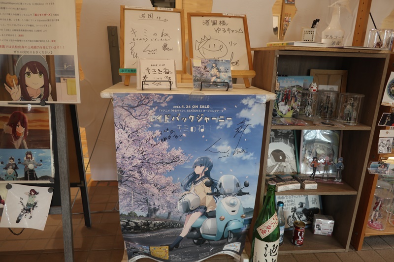 レイドバックジャーニーを歌ったキミのねさんのサインや綾乃のかぶっていたものと思われるヘルメットもおいてあります。